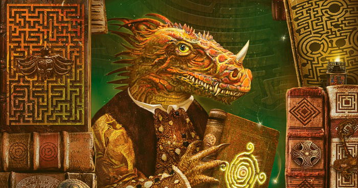 После винтовой лестницы мы увидели, что за небольшой стойкой сбоку сидел маленький кобольд (меньше Тензина) с отрубленным хвостом в шляпке, строгом черном фраке и очках. Он показался мне не очень дружелюбным, но пока мы рассматривали товары, Тензин успел купить у него красный плащ для Бернадота за 15 зм.
