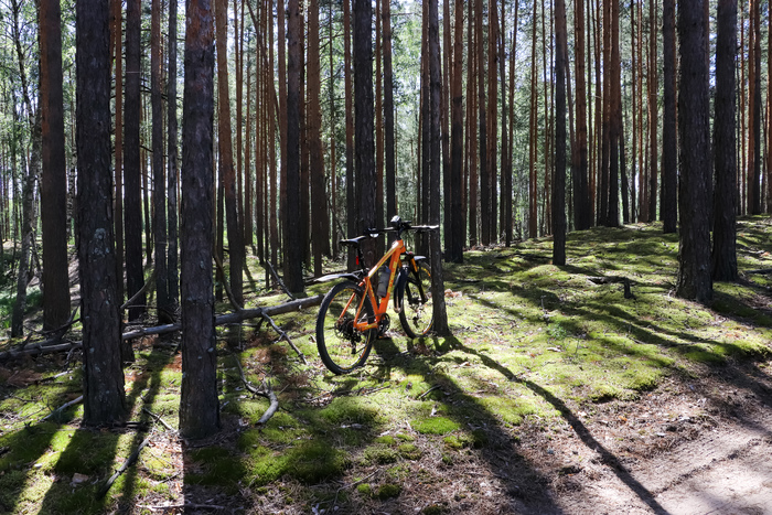 Сначала ехал по разбитому асфальту, потом по разбитой бетонке, и уже ближе к озеро пошла укатанная лесная дорога. Если б не корни деревьев, то вообще красота бы была