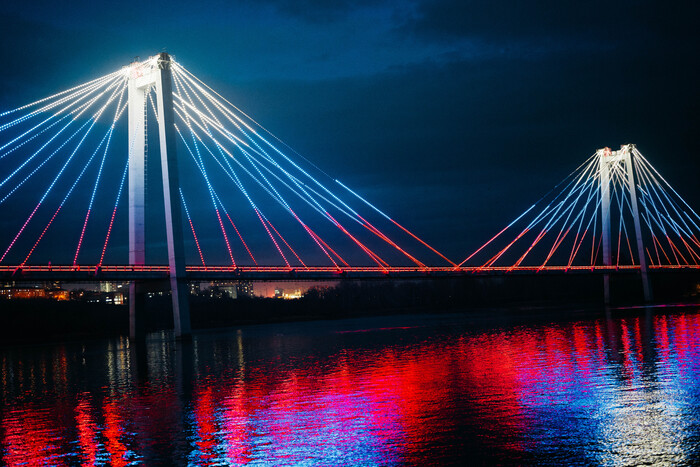 Коммунальный мост прекрасен в любое время года, но лучше им любоваться вечером(благо дело разница в 4 часа позволяет практически всегда по прилету смотреть на него в темноте).
