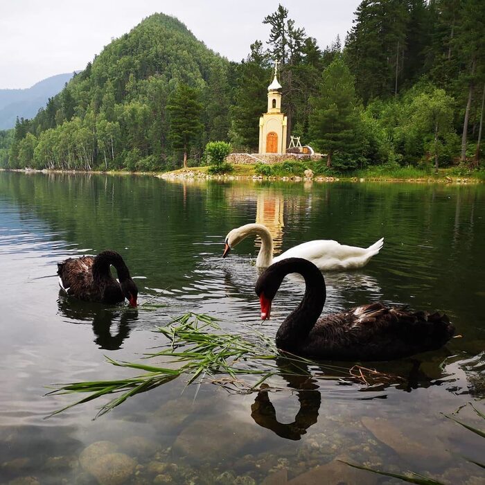 «Сказка» - самое мелкое и маленькое озеро из троицы. Вода достигает температуры в 31 градус. Просто парное молоко. Пешеходная дорожка, обустроенная на топких берегах, позволяет наслаждаться прелестями озера в комфортных условиях. Вид на гору «Шапка Мономаха» завораживает, переносит в другой мир. Глядя на такую красоту, можно забыть, хотя бы на время, о сумасшедшем ритме нашей жизни, отпустить все проблемы.