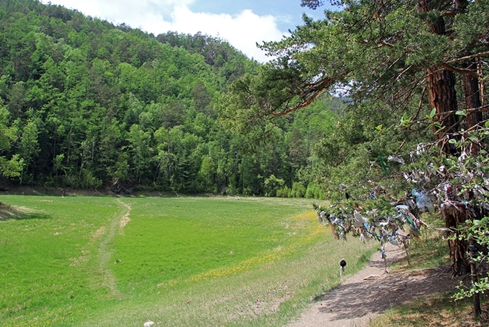По пути к озеру вы наткнётесь на огромное дерево, в дупле которого, сможете оставить монетку на счастье. Дереву ни много ни мало 400 лет! И зовут его Дедушка Листвень. Местные приписывают этому старцу статус священного дерева и обладание особыми силами. Считается, если загадать желание, оно обязательно сбудется.