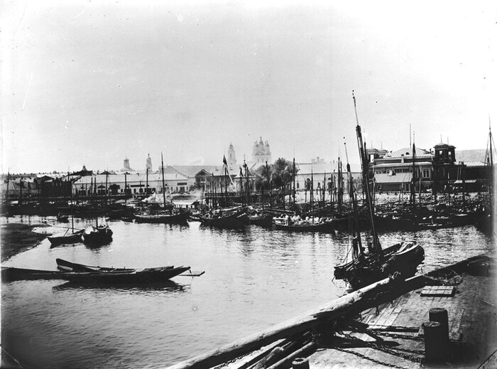 Рыболовецкий флот на реке Кутум на фоне Астраханского Кремля, 1894г