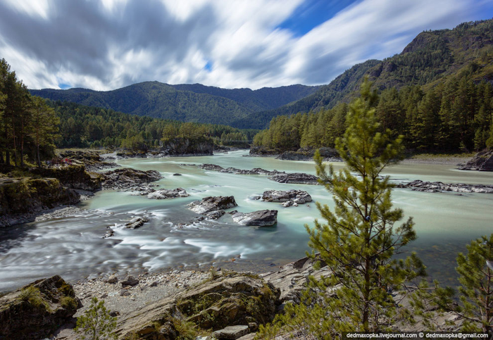 А вот сама стрелка Чемала и Катуни. Кстати, недалеко расположены и хорошие базы отдыха Чемала: