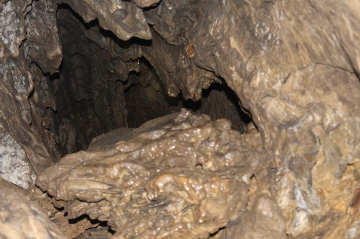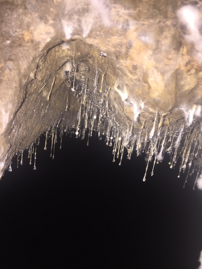 Когда спускалась, и не думала, что увижу там красоту : подземный ручей , натёчные образования, мерцающие в свете фонаря сталактиты. Пещера двухъярусная, длина составляет примерно 80 метров. В каждую пещеру мы берём с собой мешок для мусора, удивительно, но нечего было собирать! И главное- там есть своя флора и фауна! - альбиносы жучки, следы летучих мышей , грибы причудливых форм, - и все это в зоне темноты.