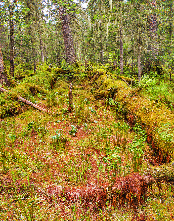 Кроме безграничных полян черники, здесь в изобилии растут голубика, брусника, шикша, жимолость. Реже - малина и смородина. Бывает очень много грибов. А вот молодые ростки черемши найти уже трудно. Вам придётся выбирать: черемша или черника.