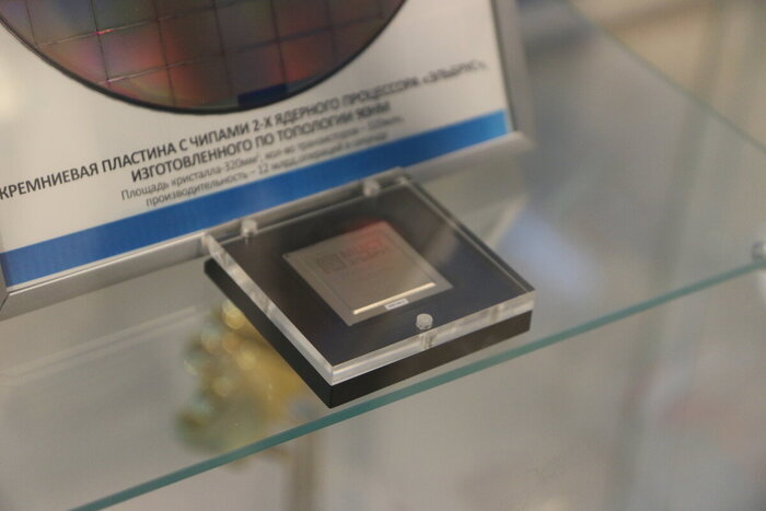 Но Россия не только имеет свою собственную архитектуру, но и самостоятельно производит микропроцессоры. Мне удалось увидеть один из таких процессоров вживую. Их делают в Зеленограде, на заводе "Микрон". На фото пластина с чипами этого процессора, ниже сам процессор в корпусе