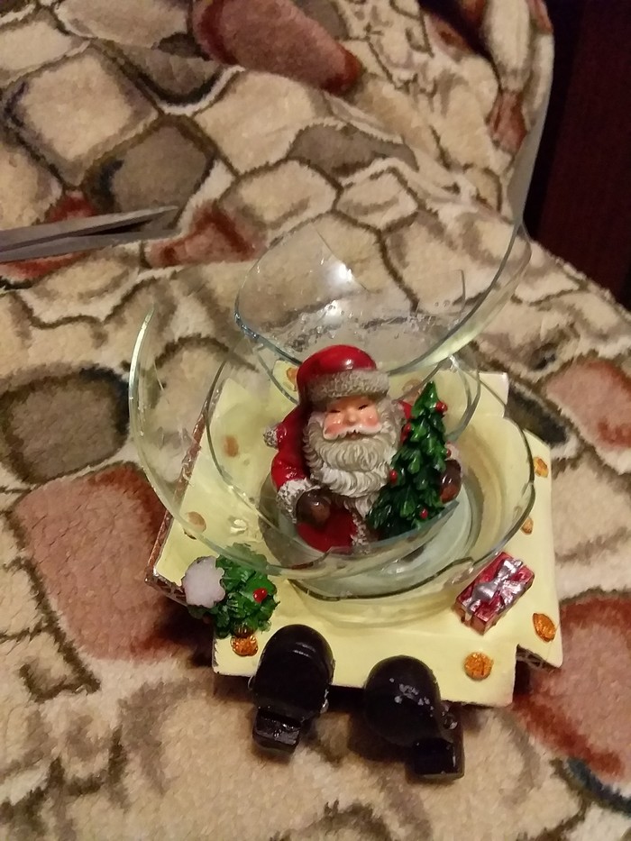 Но! Почта России не была бы почтой России, если бы не подгадила! Еще в подарке лежал замечательный стеклянный новогодний шар, который, несмотря на упаковку пупыркой, умудрились разбить во время пересылки, жидкость из шара вылилась и залила подарки. Обидно, конечно. Шар мы попробуем починить.