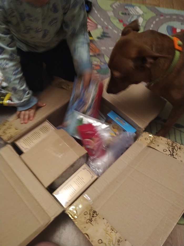 Все в нашей семье получили по чудесному подарку))) Мы с мужем уже распоковали и приступили к сборке лабиринта, деревянные модели никогда не собирали, но всегда было интересно попробовать!!! Конфетки положили под ёлочку, ну, а наш пёсель вытребовал вкуснейшую собачью печеньку, и остался в восторге! От всех нас, спасибо, Дедушка! С Наступающим!