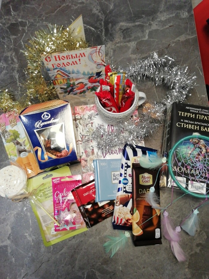 Начнём, пожалуй, с конфет. Много очень вкусных конфет (уже продегустировал, как же без этого)! И коробочка со сбором полезных крымских трав от простуды. Вот за это прямо отдельное Спасибо (в дополнение к общей огромной благодарности за подарок), это как нельзя вовремя! :)