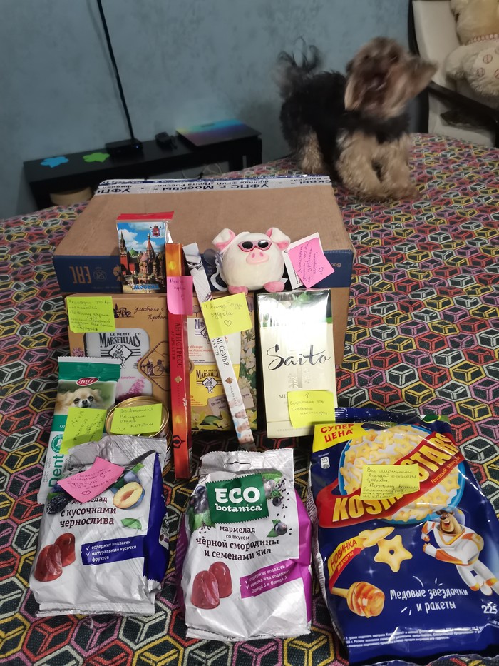 Собрала подарок от себя, отправила своей снегурочки. Пришло от нее подтверждение о получении и тут увидела, что ваш отправитель подтвердил отправку подарка....и началось оно - ОЖИДАНИЕ. Я очень рада, что Почта России меня не подвела, и посылка до меня дошла: все таки от Москвы до Хабаровска путь не близкий. 13 ноября смогла добраться до почты, и этот подарок был лучиком света в этом дурацком дне (а как еще можно назвать день, когда ночью с машины чуть колеса все не сняли, и утро началось с общения с полицией)