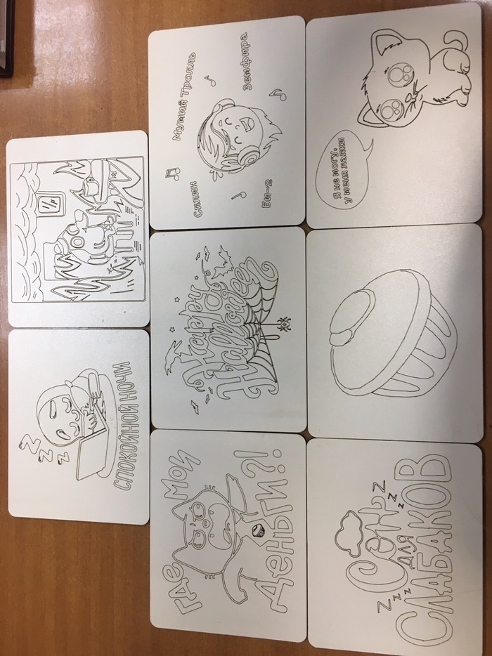 Тут есть и цитатки про работу, и отделения для всего на свете, и подставка под кофе, и карточки с картинками, и милые значки, и даже мое имя!