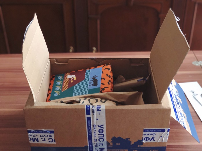 Вот и я наконец то добралась до почты и забрала свой подарок. У меня никогда не хватает терпения открывать подарки и фиксировать всё на фото, мне сразу надо всё достать, рассмотреть, пощупать и всё такое.