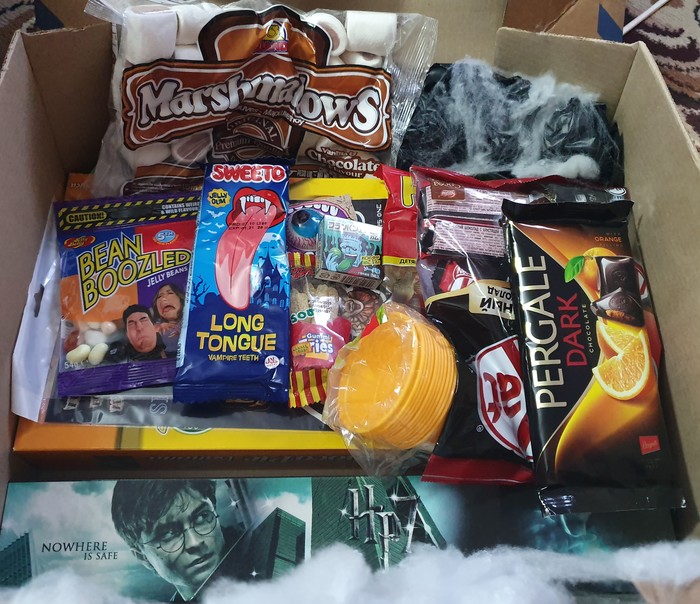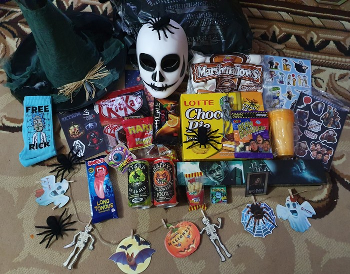 В этом году у меня случился супер скоростной обмен, посылка из одного края города в другой. Вообще, если эти три дня ожидания переместить на временную шкалу, то она бы выглядела как-то так: радостное оповещение об отправке подарка -> неведомая внезапно происходящая в моей жизни дичь -> радостное получение подарка. Сказать, что обмен мне поднял настроение, ничего не сказать. Ещё раз преогромнейшее спасибо моему тайному хэллоуинскому Джеку.