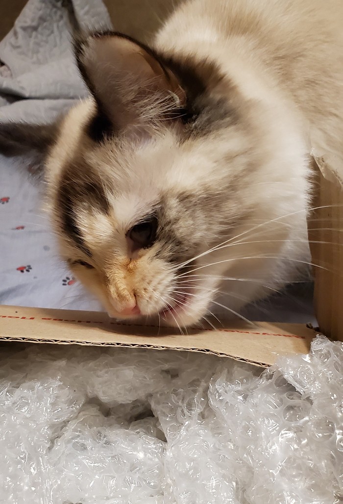 Ну и по традиции кот, который как ни странно не любит коробки. Вот он в новом облюбленном кульке