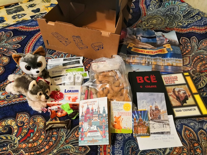 Ещё были вкусняшки (мягкие) для меня и для собаки (совсем не мягкие, но пёс в восторге). И всё это заботливо упаковано в пакет с изображениями любимого мною Питера.