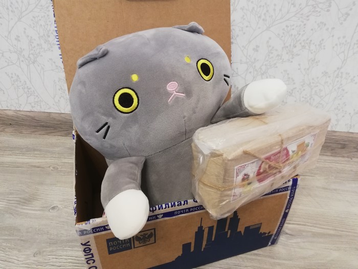 Итак, свою посылку от альтруиста я ждала целую вечность,  а если точнее, то 4 дня, которые были вечностью. Забрала большую и тяжеленькую посылку весом почти 3 кг. Котоинспекции, к сожалению, нет, так что не обессудьте.