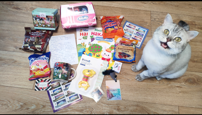 Очень приятно распаковывать подарок-сюрприз. В этот раз он почти 2 кг!!! Я сразу понял что одной кружкой я не отделаюсь ))). Людмила с мужем не забыла про всю мою семью в т.ч. про кошку.