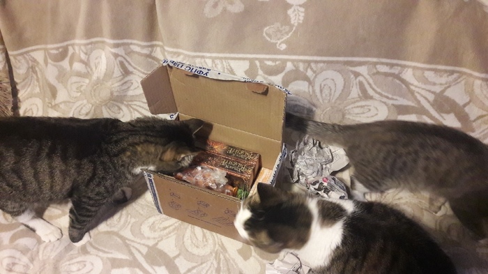 Котоинспекция пыталась всячески волокитить процесс, отказывалась от полноценного исследования, а один сотрудник и вовсе засел за унитазом с большими глазами и заявлял, что посылки - дело опасное и непредсказуемое. Пришлось отстранить их от распаковки. Впрочем, отстраняться или нет меховые инспекторы всегда решают сами.
