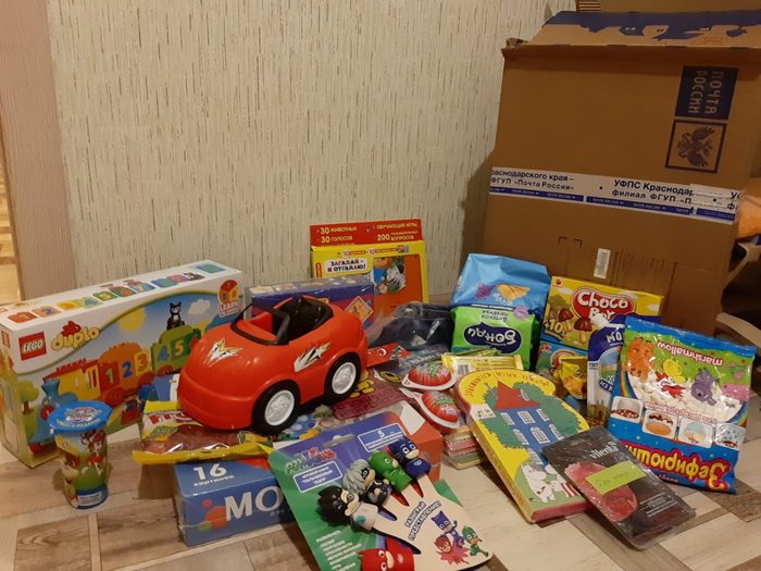 В одном из постов кто-то предложил найти и порадовать таких же деток у которых проблемы со здоровьем. Я не могла отказать и попросила у Ванюшиной мамы «явки и пороли». Связавшись с желающими по почте, передала данные и стала ждать. Увы, данные процесс я никак не могла контролировать, но постепенно стали поступать слова благодарности. Когда все посылочки первой партии нашли своих хозяев, я попросила родителей написать небольшие отзывы и приложить фото по возможности. Это пост БОЛЬШОЙ благодарности от разных маленьких человечков, которые редка видят такие подарки, тем более от незнакомых людей. Насчет фото, надеюсь никого они не смутят.