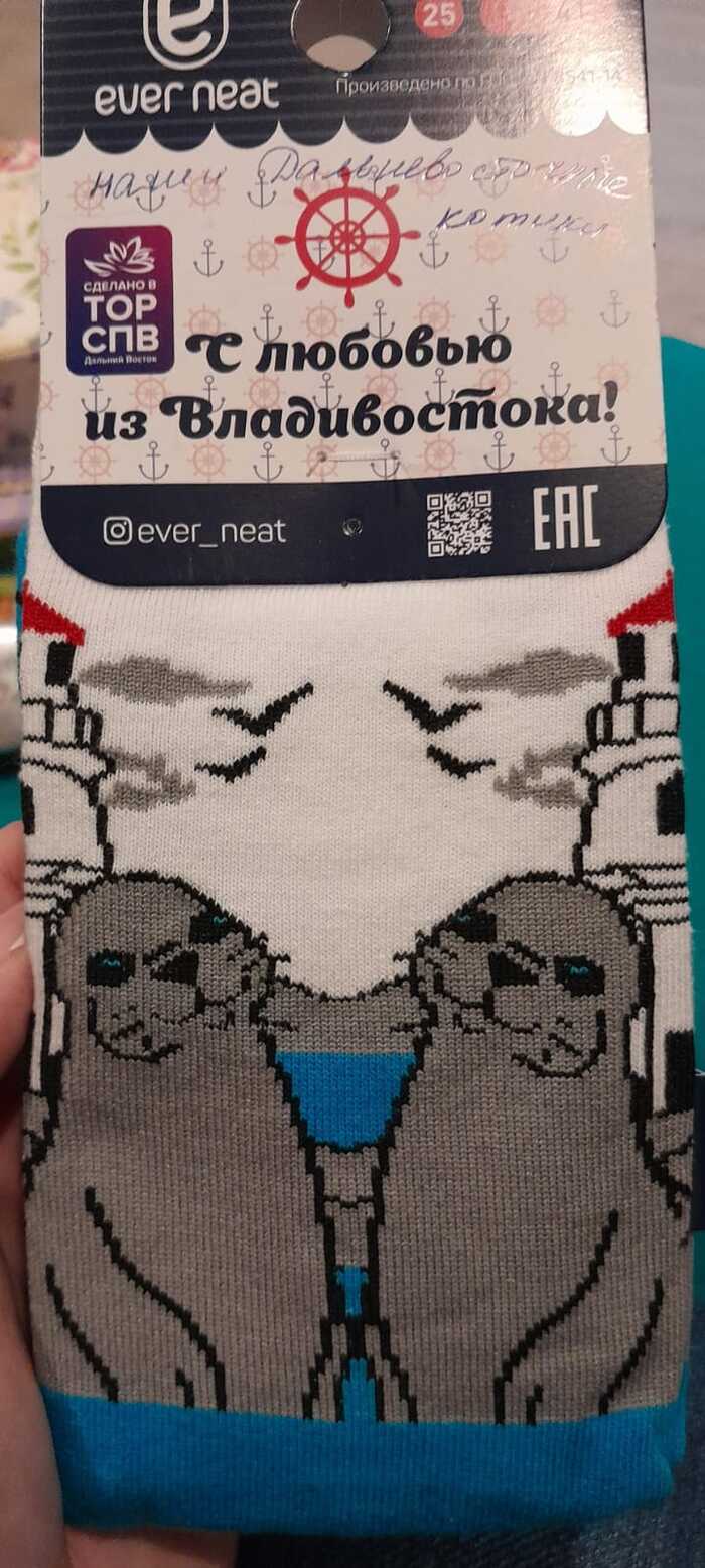 А в одном из свертков обнаружились очаровательные носочки с Дальневосточными котиками. Одна проблема - очень жаль будет эти носочки надевать. Потому будут лежать в коллекции носков. Да-да, у меня есть и такая :)
