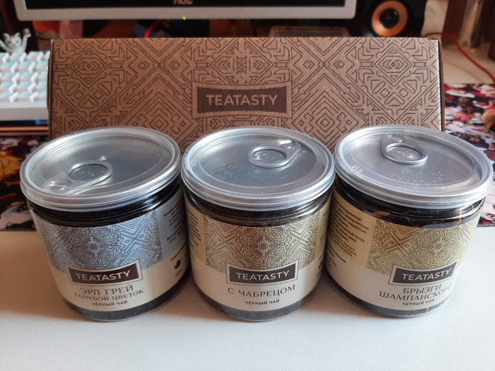 Чай - от эстетического наслаждения до полного попадания по вкусам с первой баночки: эрл грей - one love, да ещё и с васильком - more love, чабрец для души, а последний, с фруктами и травами - как контрольный выстрел. Давно я так чаям не радовалась.) Ну и на фото уже попал самый большой подарок ^◇^