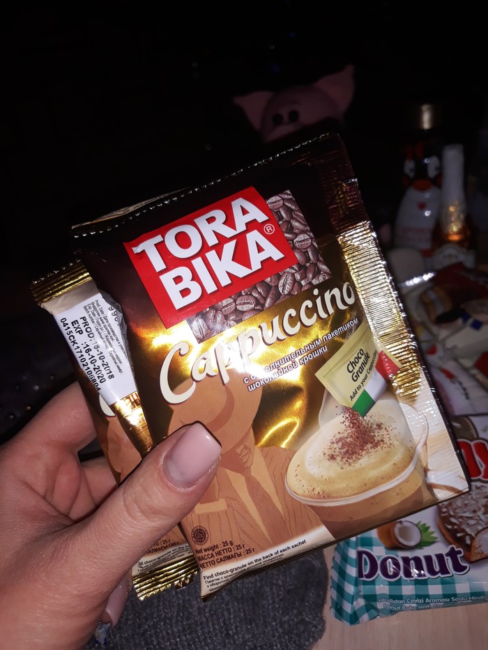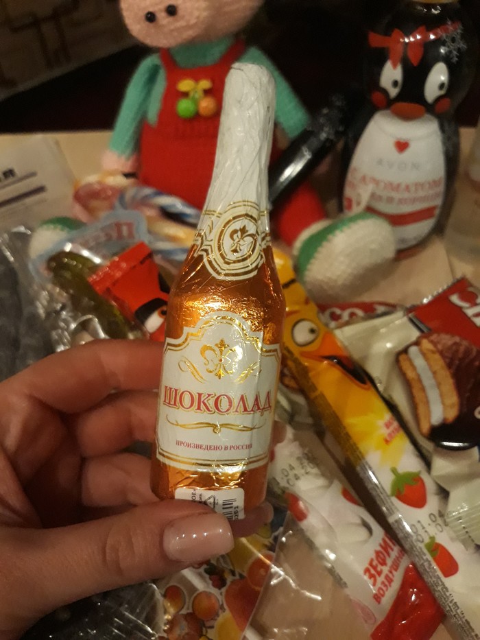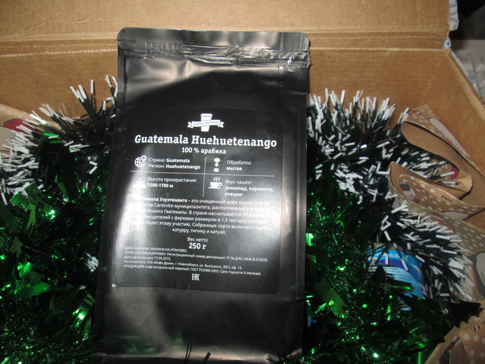 Вместе с новогодним настроением Дедушка положил в подарок замечательную хлопушку и магнитик с праздничной хрюшей, которая уже заняла своё место на холодильнике. Отдельное спасибо за вкуснейший шоколад - обожаю такой! Напиток с Иван-чаем и зелёный чай - отлично согреют в морозы. А кофе... Просто нет слов, сплошное удовольствие!