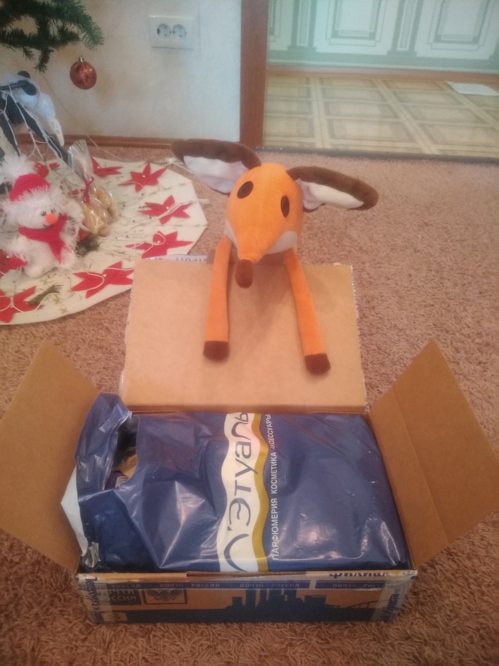 3 января бегу забирать свою посылочку из Саратова) заранее дома распечатала уведомление,так как в почтовом ящике и не пахло никаким уведомлением,и счастливая направилась на почту) Забрала и вот она нарядная на праздник к нам пришла) Спасибо моему Дедушке Морозу, учёл всё мои пожелания!