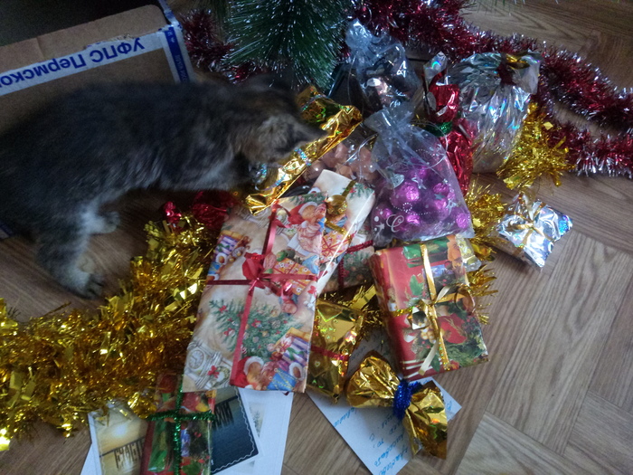 Большое спасибо моему Дедушке за приятный подарок, собранный с душой, за новогоднее настроение и спасибо администрации проекта за эти эмоции! Ну и поздно подоспевшая бульбаза котоинспекция:
