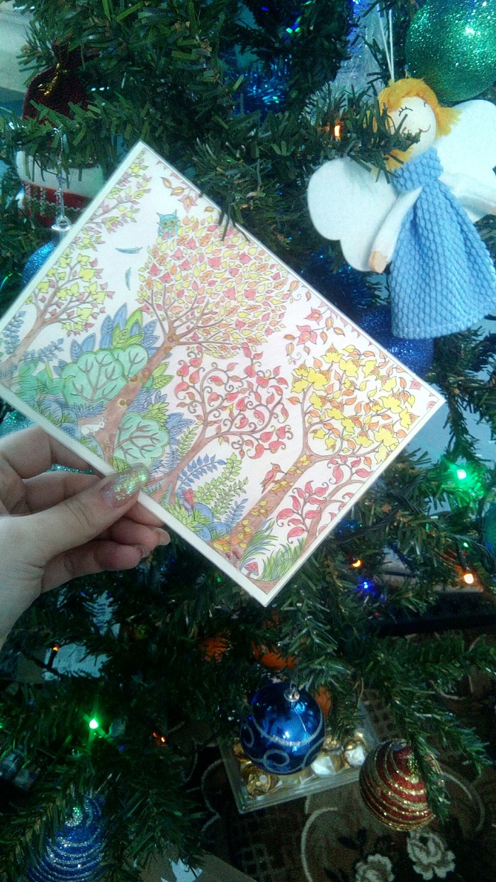 Сверху нас ожидает чудесная открытка, бережно раскрашенная ручками моей @ychaka, с пожеланиями:)