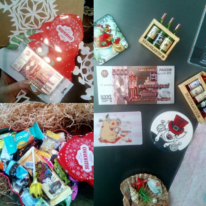 Хоть посылка и добралась сюда 31-го, но забрать ее получилось только сегодня и так даже лучше! Новый Год уже прошёл, а подарки продолжаются :) Спасибо огромное моей тайной Снегурочке, все подарки очень классные! И сладости, и красивый блокнот, и снежный шар (всегда хотела иметь такую штуку), и даже шампанское :) И тёплые носочки для меня мерзляки самое то! В общем, я в восторге! Спасибо за праздничное настроение!