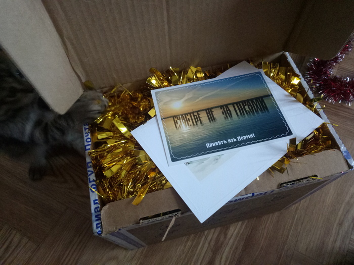 Несла её до дома с глупой улыбкой на лице и чуть не вскрыла прямо в снегу)) Спасибо за большое письмо (фотографировать его не буду), было приятно и весело его читать. Давно не читала бумажных писем. С мемасиками разбирать коробочку стало ещё веселее :)