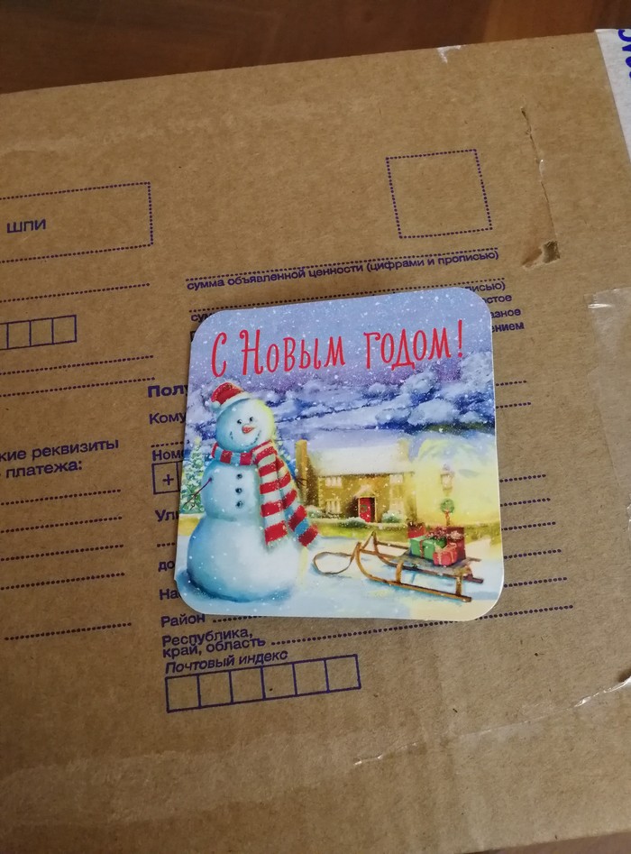 В то время, когда шампанское уже выпито, новогодние салаты подходили к концу, мне пришло уведомление о том, что посылочка дожидается меня на почте. С моим Дедом Морозом мы списывались на сайте и планировали встретиться вживую, но в предновогоднее суете в итоге подарок уехал почтой. Через 6 дней подарок был получен.