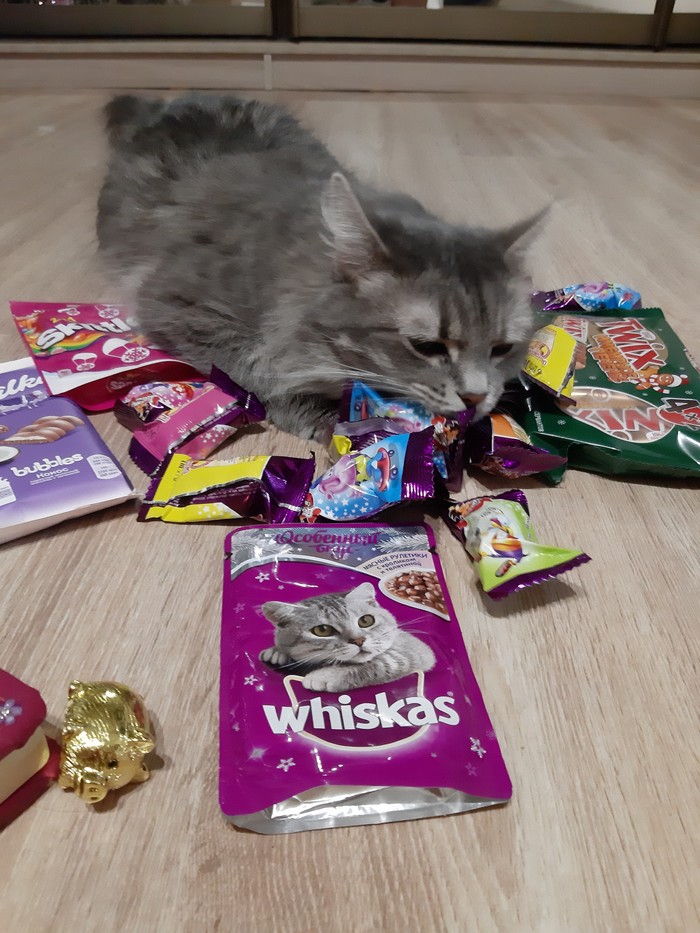 Коробка и сладости с Вискасом были песпардонно отжаты ХлОпушкой