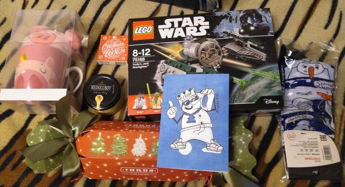 Хочу выразить благодарность Деду Морозу и Снегурочке из Барнаула, мой первый обмен подарками удался на славу. Посылку я получила ещё в декабре, заскочив на почту по пути на работу, часть подарка осталась на работе..