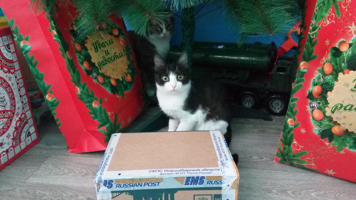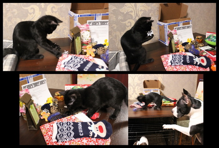 Ананас одобрил дальнейшую распаковку (запечатали хорошо!) и вот первый подарок среди меховой гирлянды: