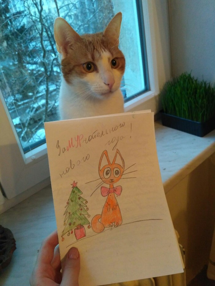 Снегурочка написала мне письмо с поздравлениями (не покажу:)) и нарисовала милейшего котика, и по-моему с 80% попаданием срисовала Ананаса!