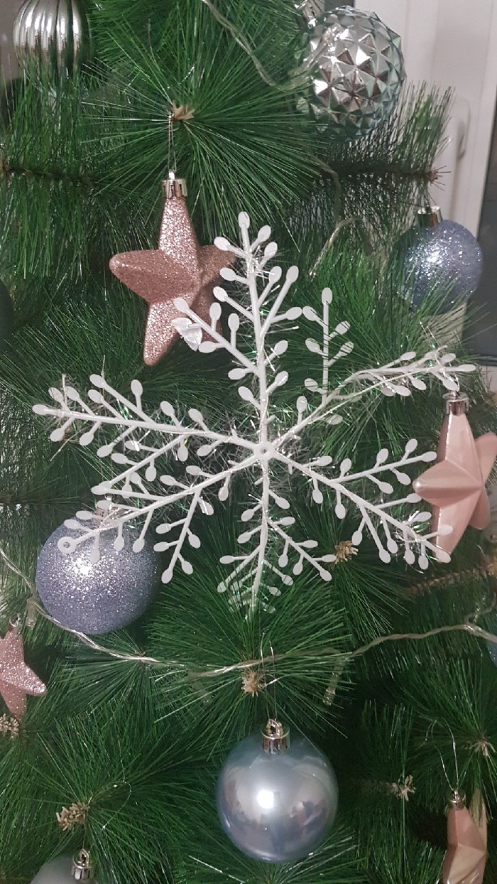 Мишура, открыточки с теплыми словами, мое новогоднее настроение несется ввысь! Достаем елочное украшение в виде снежинки, которая сразу была использована по назначению