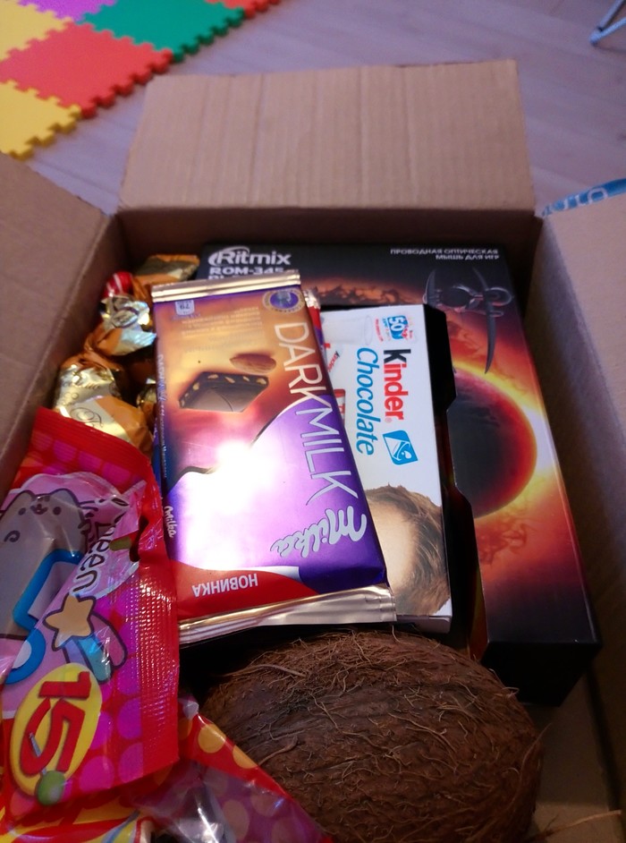 Внутри оказались вкусняшки, большая часть которых к моменту написания этого предложения уже съедена.
