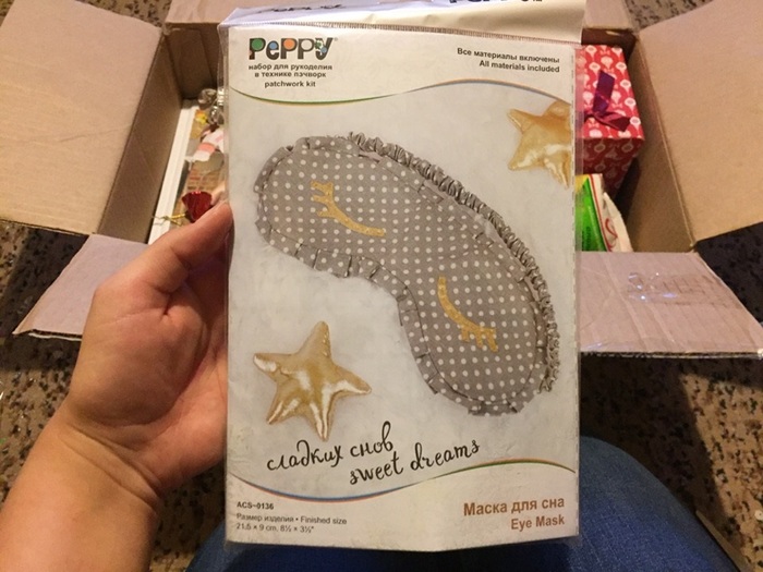 После гирлянд первое, что я увидела - это прекрасный набор для создания своими руками повязки для глаз. В описании про себя я рассказала, что работаю в разное время суток и очень люблю вот такие повязки для сна, чтобы даже утром и днем не мешал спать свет)