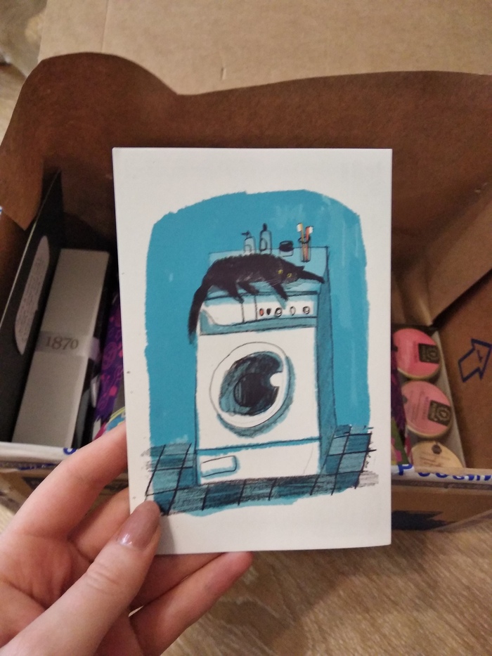 И посылочка была прекрасна) Милота внутри. Открытка с котиком) Я писала, что люблю котов)