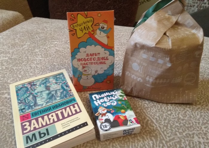 А тут книга, волшебный чай :) , кружка, книга, и новогодняя игра (типа Фанты).