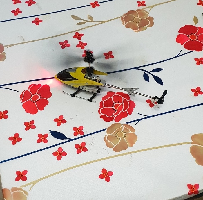 Маленький вертолет на пульте управления, который даже доехал целым. Теперь у меня есть 2 брата-вертолета. Старший - большой и неповоротливый, младший - маленький и маневренный. Он может летать даже дома.