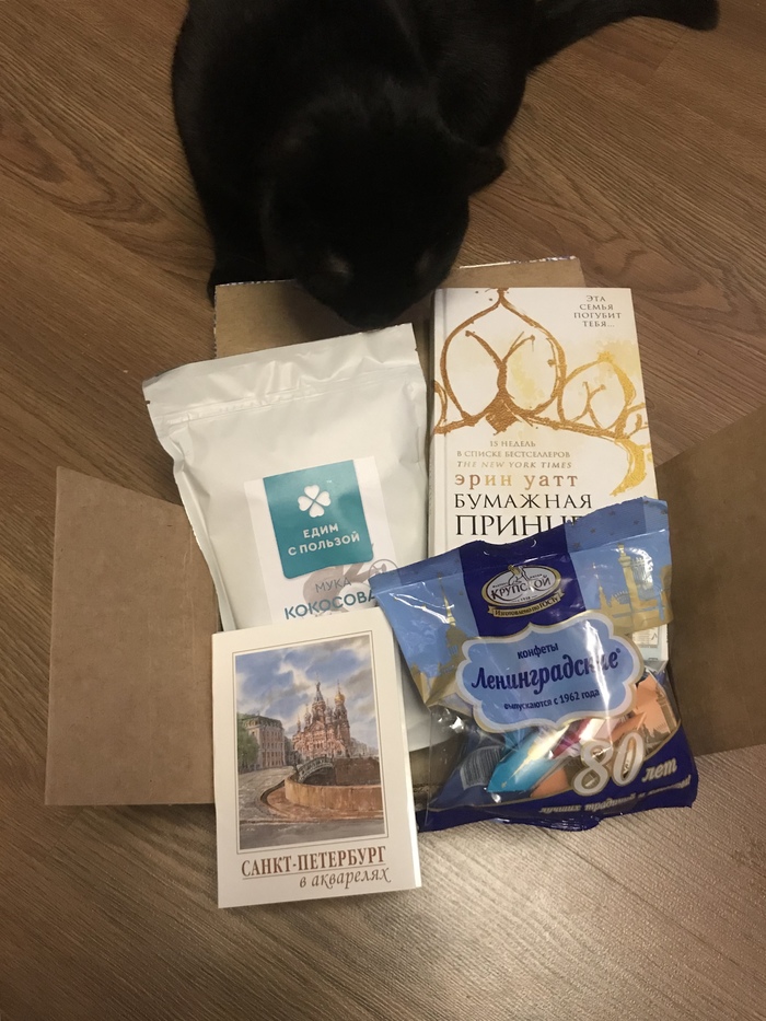 Вот и я дождалась подарочка от своей Снкгурочки! Уррра!!! Вчера забрала и сразу домой. Ждала мужа, чтобы вместе распаковать. Снегурочка учла все мои пожелания!!! Замечательная книга, которую я уже начала читать. Чудные открытки с видами Питера. Люблю я этот город! Несколько раз туда прилежала и планирую ещё побывать. Так же ленинградские конфетки. Очень вкусные. Хотела оставить на сам Новый год.... но не сложилось 😂 они меня манили, манили и заманили 😂😂😂😂 А ещё Снегурочка подарила мне муку кокосовую! Я вообще не знала, что такое существует! Очень люблю печь и сразу же полезла искать рецепты. Выбрала и теперь на Новый год у меня ещё и кексы кокосовые будут. Вот.