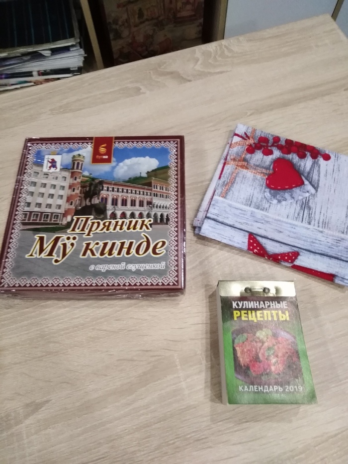 Также я получил вкусные пряники, кухонное полотенце и календарик с рецептами на будущий год) Поесть мы любим, да))))