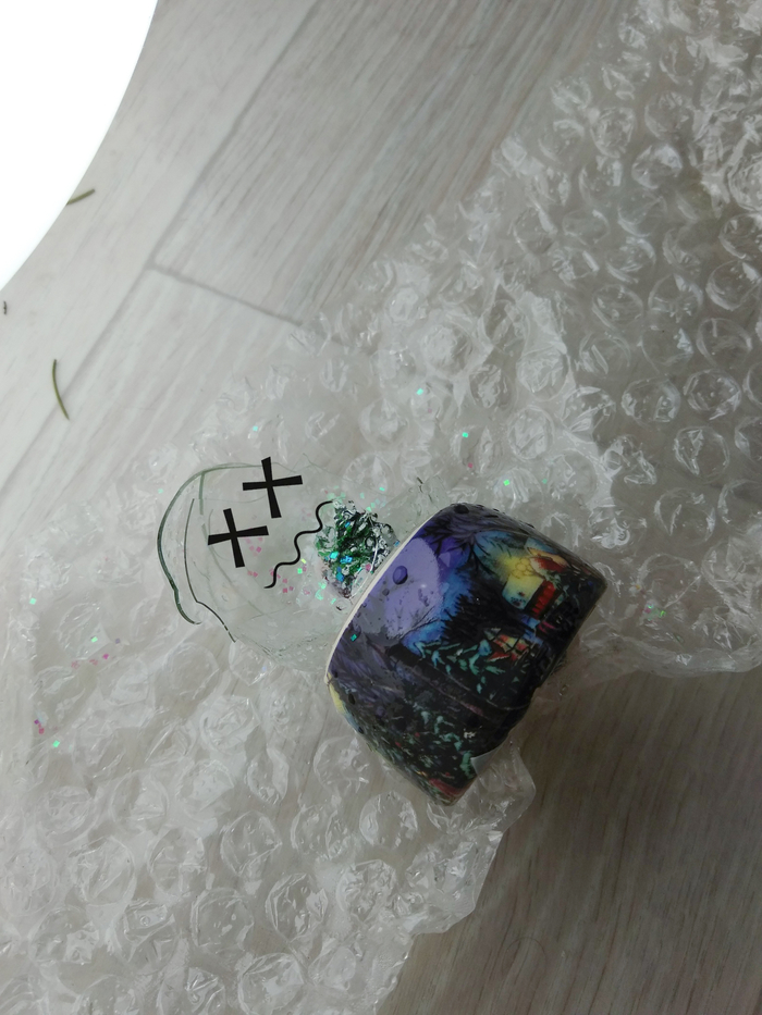Снежный шар, не смотря на очень заботливую упаковку, не пережил долгой дороги, расплескав новогоднее настроение по пути :)