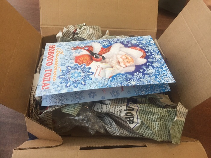 Ура! Вот и наша посылка от Деда Мороза приехала из далёкого Новосибирска! Она добиралась к нам через всю Россию, и воооооот: