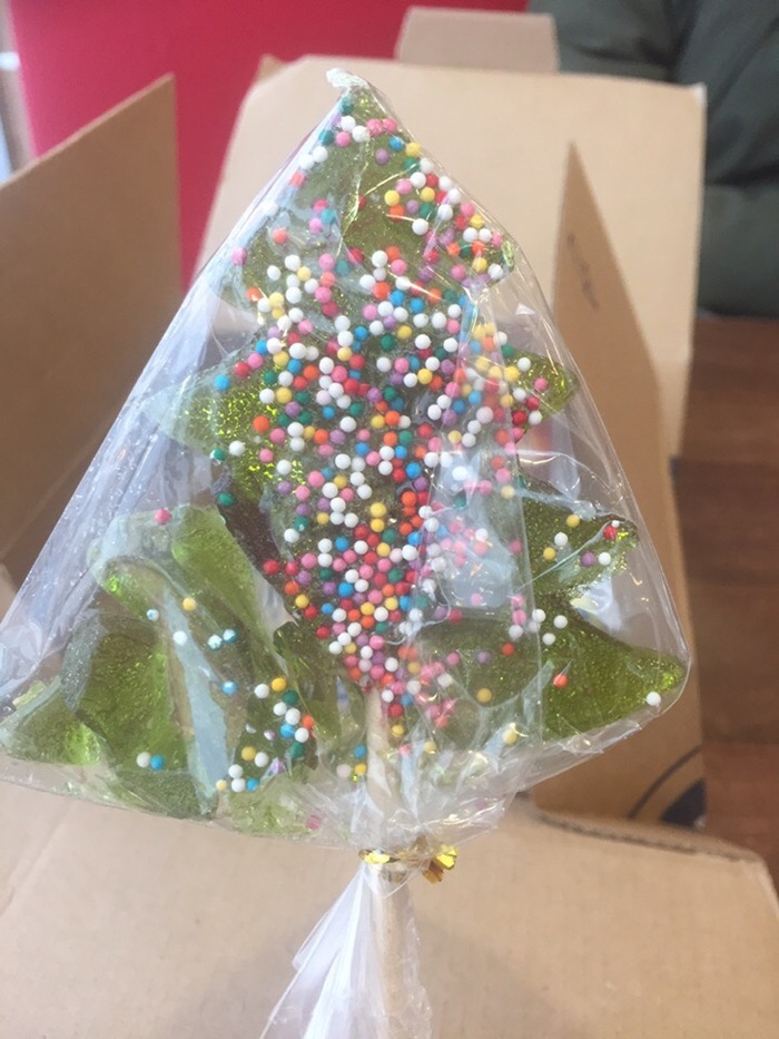 Что там ещё? Новогодняя конфетка! Она немного поломалась, но я ж всё равно её съем :3
