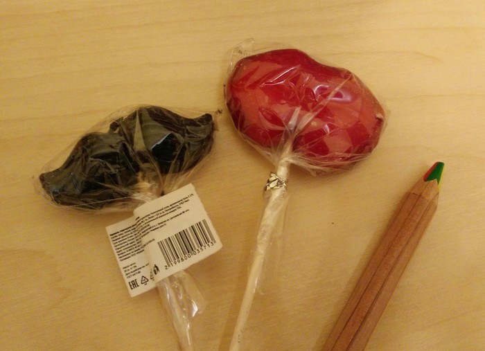 Еще там была гора сладостей, в том числе и два больших леденца, как раз нам с мужем. А также 4-х цветный карандаш, чтоб скрасить серые будни))