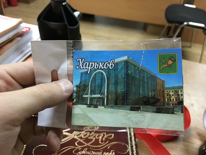 Сувенирный набор конфет. Внутри 4 вида, 1 из них я видел и на прилавках в нашем городе (очень вкусные кстати).