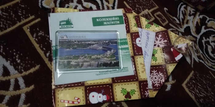 В нем магнитик из славного города -Запорожья и письмо от Снегурочки.